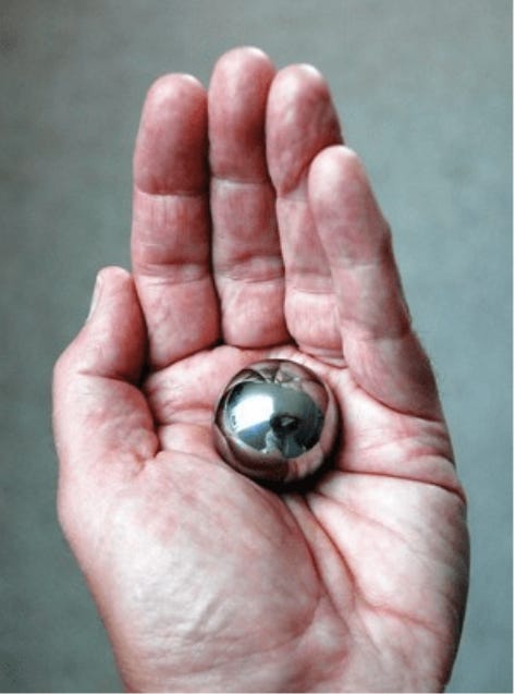 Just to give you an idea: the ball the person is holding is made of a metal called thorium. That ball contains all the energy that you need in all of your life, if you happen to be an average contemporary American. All of your flights, your HVAC, commute, lighting, cooking, everything. On a yearly basis, that thorium would cost you $1.