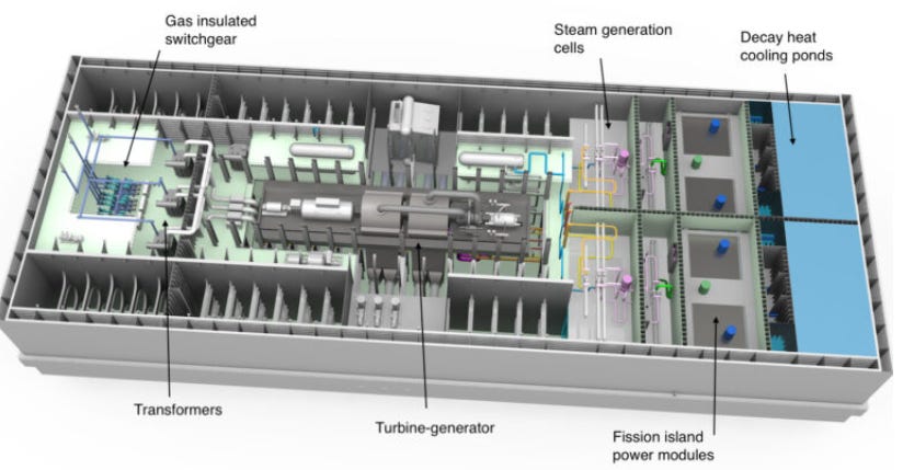 Each “can” produces 557MWth, for a combined power output of over 500MWe.