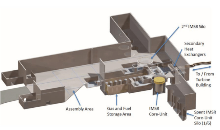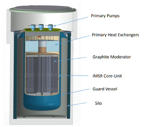 Terrestrial Energy is a Canadian company developing a graphite-moderated, fluoride salt burner reactor, called the Integrated Molten Salt Reactor (IMSR). In contrast to the GIF reference design, this reactor has integrated heat exchangers.