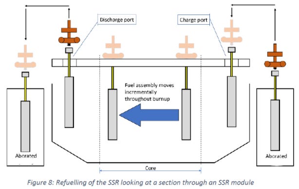 Moltex is a company originally working out of the UK. More recently they are active in Canada as well and are actively participating in some SMR initiatives. They are developing a family of reactors, called Stable Salt Reactors (SSR). Their reactor core designs have a unique property: their fuel salt is not pumped around.