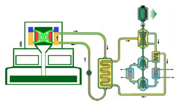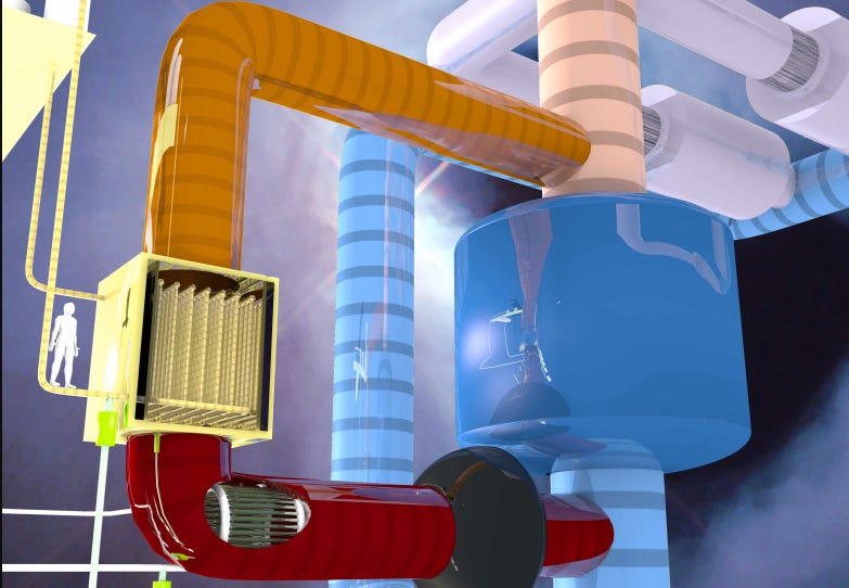 The goal of Elysium is to provide cheap power. To achieve this, the non-nuclear part of the power plant is also optimized. In a 2019 presentation, the power conversion section was shown. In this setup, there is not a regular steam generator, but a low-cost Loeffler boiler.