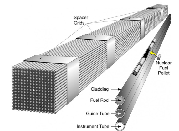 One of the most important parts of a nuclear system is its fuel. Today’s large light water reactors use pellets made out of uranium oxide. These pellets are stacked in in fuel rods made out of zirconium. Multiple of these fuel rods are arrange in so called fuel assemblies. A typical option would be a 17×17 assembly.
