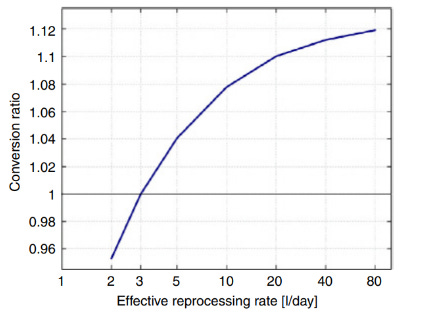 The alternative is the usage of fast reactors, where fission products tend to capture less neutrons and additionally more neutrons are available per fission reaction. Siemer5 gives an overview of the breeding ratio as a function of how much reprocessing is done.