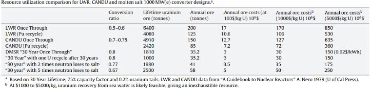 LeBlanc6 gives an overview of uranium consumption and fuel prices for different technologies and uranium costs.