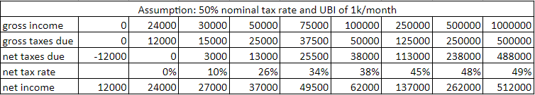 The progressiveness of this scheme is actually something he emphasizes and contrasts to indirect taxes, like a VAT in Yang’s proposal; if you are poor, you will spend a huge percentage of your income every month, which will be taxed. The result could be highly regressive.